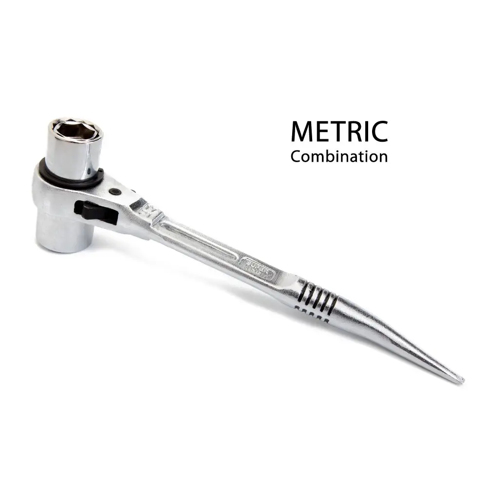 4 socket sizes including 17, 19, 21 and 24 mm all constructed from solid steel and coated in an ultra-tough nickle chrome plating. Compatible with Dirty Rigger® tool/podger lanyard.