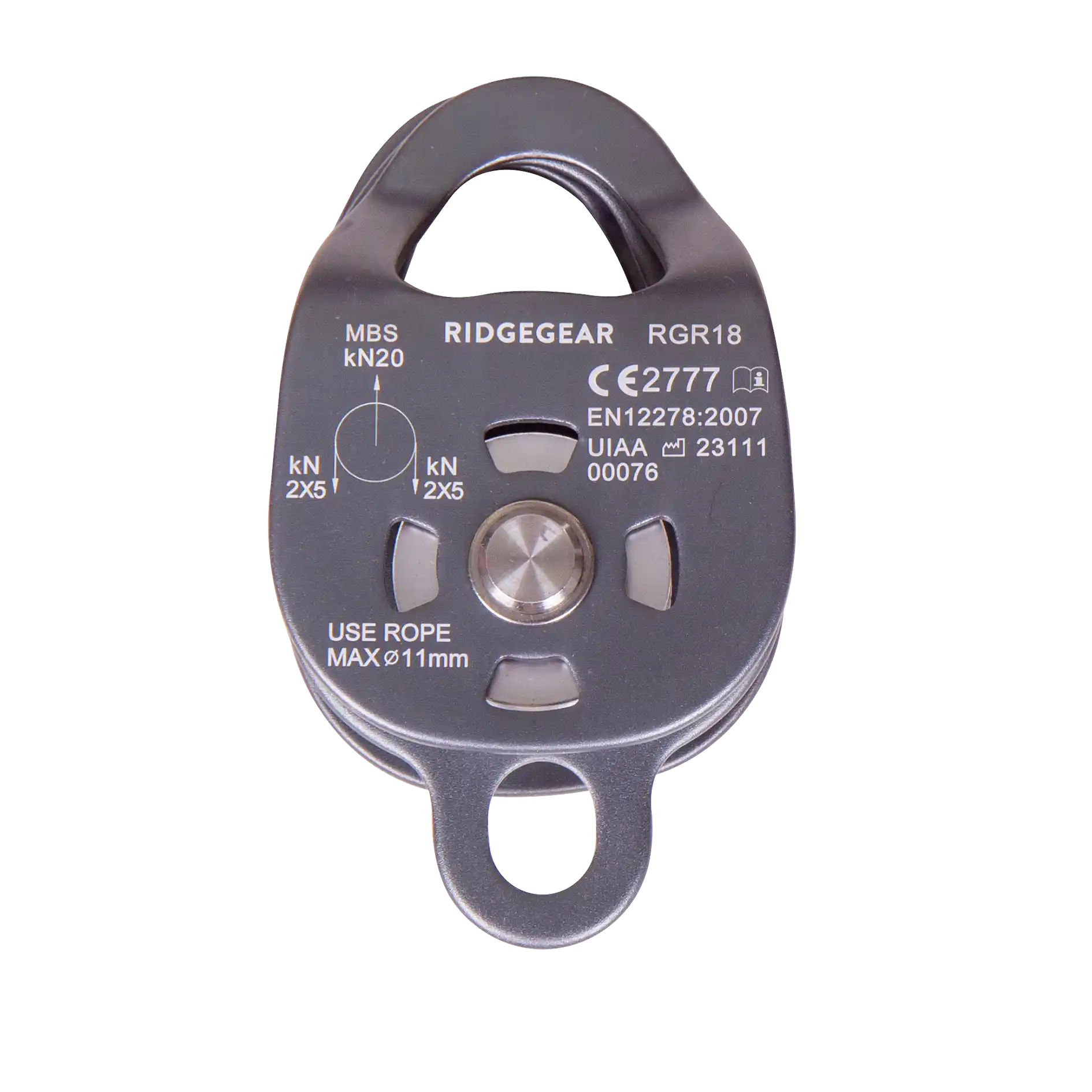 Conforms to:EN 12278:2007 for maximum rope diameter of 11mm